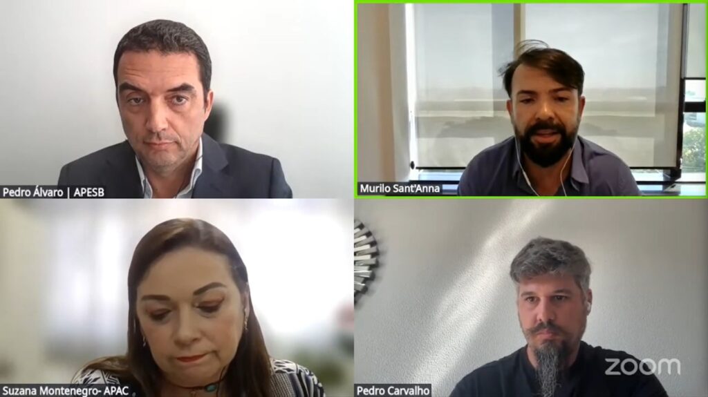 Pedro Álvaro, mediador e vice-presidente da APESB iniciou os debates explicando sobre o que são soluções baseadas na natureza. O evento teve início com a apresentação de Pedro Carvalho, do Departamento de Ciência Ambiental, de Aarhus University, Dinamarca, que trouxe a experiência dos projetos pilotos para o tratamento e reutilização de águas em diversos países do mundo como: Estados Unidos, França, Bélgica, Itália, Alemanha e Noruega, cada um com sua particularidade.